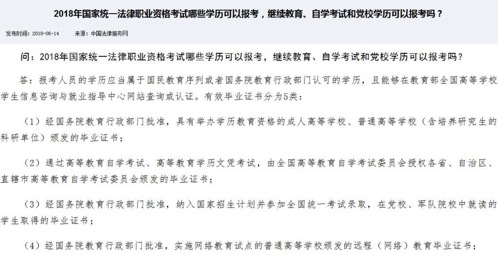 2018年遠程(網絡)教育畢業證書可以報考國家統壹法律職業資格考試? 發佈於 2020-10-06 由 admin www.12348.gov.cn/wcm/pub/12348/sfks/wdk/201806/t20180614_783.html 查詢 whatsapp: (852) 6222 2202 微信: LawyerExam 香港中國律師協會 www.ChinaLawyer.org.hk 粵港澳大灣區國際律師學院 www.Law.edu.hk
